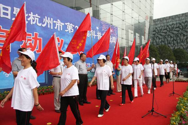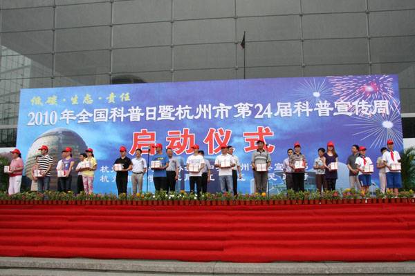 9月16日,2010年全国科普日暨杭州市第24届科普宣传周运动在杭州钱江新城市民中间开幕,市人大常委会主任王国平,市委副书记王金财,市委常委、副市长沈坚等向导出席启动仪式。