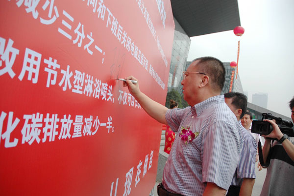 启动仪式结束后,王国平主任带头在联合国倡议的七条“低碳生活体例”上签名