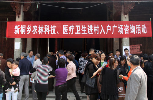 4月17日上午,富阳市科学技术协会组织市农学会、市医学会等部门前往新桐乡开展农林科技、医疗卫生进村入户运动。
