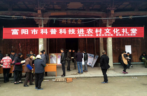 3月13日上午,富阳市科学技术协会组织市林学会、农学会、医学会等相干学会单位及各行业科技专家组成的“三农”科技宣传、医疗咨询服务队,在富阳新桐乡俞家村文化礼堂开展科技下乡服务运动。