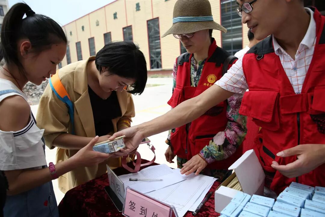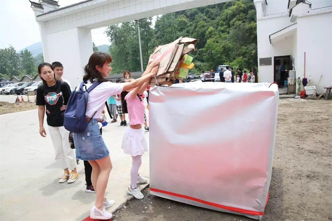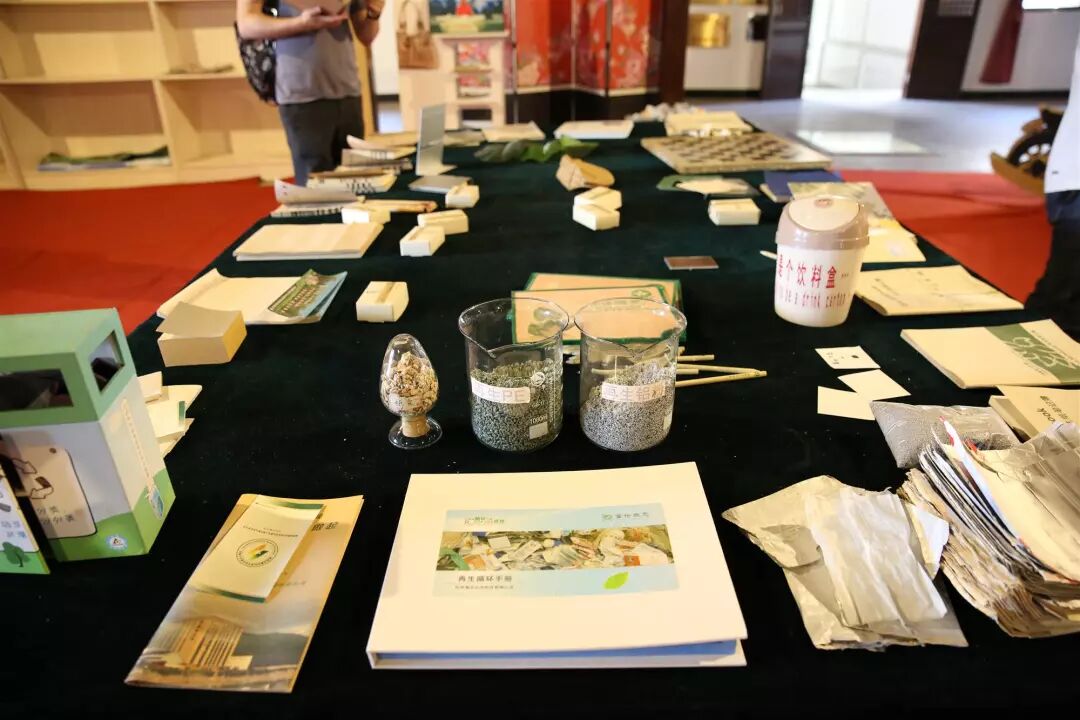 每个家庭将自己收集好的可回收利用的物品,在工作人员的指引下兑换成再生纸做的铅笔、乐活水和认养一头牛公司提供的牛奶。