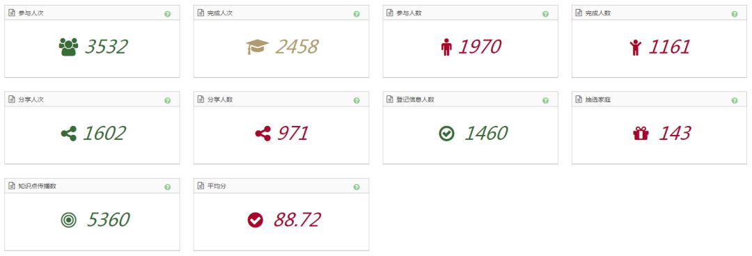 本次活动线上参与3532人次,完成知识竞赛2458人次,平均分88.72分,抽选143组家庭,350多位来自全区、部分杭州各小学的学生及家长参加了本次活动。
