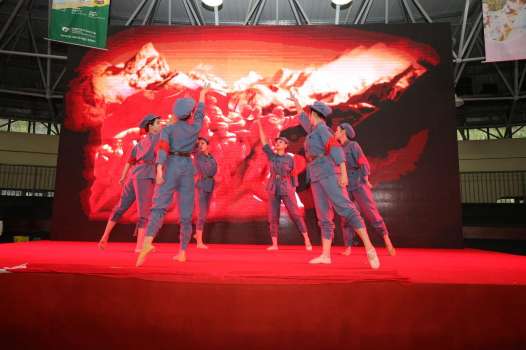 一面鲜红的旗帜擦亮了希望的田野,从1921年的那个初夏,经历了百年的砥砺奋进,百年的春华秋实,飘到如今,始终指引着十四亿人前进的方向。舞蹈《鲜艳的旗帜》标志着本次活动正式拉开序幕。
