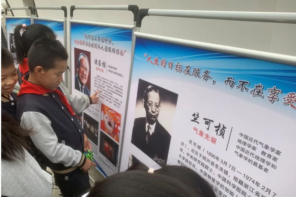 走进春建中小,只见热闹的课间里,学生们将校园里放置的科学家的图版团团围住,好奇的脸上是对科学的好奇。“人生的目标在服务,而不在享受”,高年级的同学逐字念着竺可桢的语录,虽理解并不十分透彻,但科学家崇高的志向、让人敬仰的品格已经在他们心中播下种子。