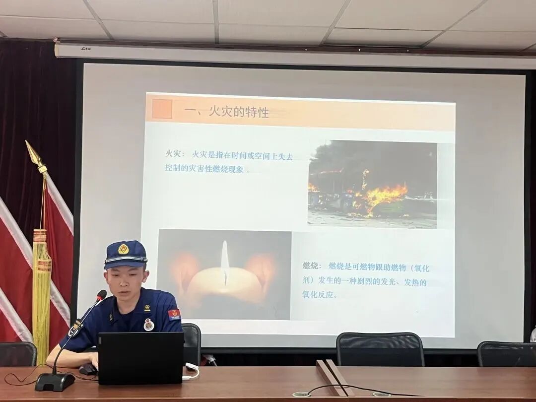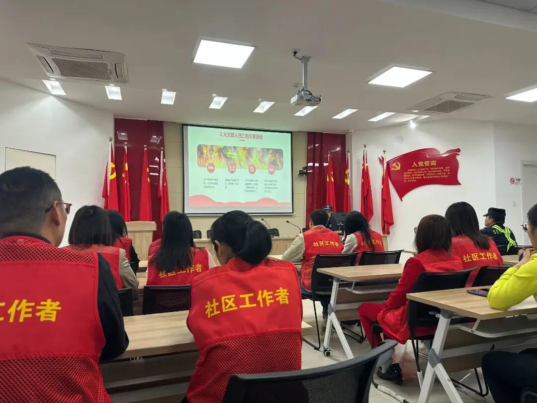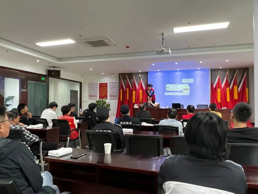 区消防大队吴思永老师向参会的辖区各小区物业工作人员、重点商铺业主、社区工作人员讲述了火灾发生的原因、火灾发生对生命、财产产生的巨大危害,并对日常消防用品消火栓及灭火器的使用方法进行了详细地讲解,讲解生动详实,现场人员受益匪浅。