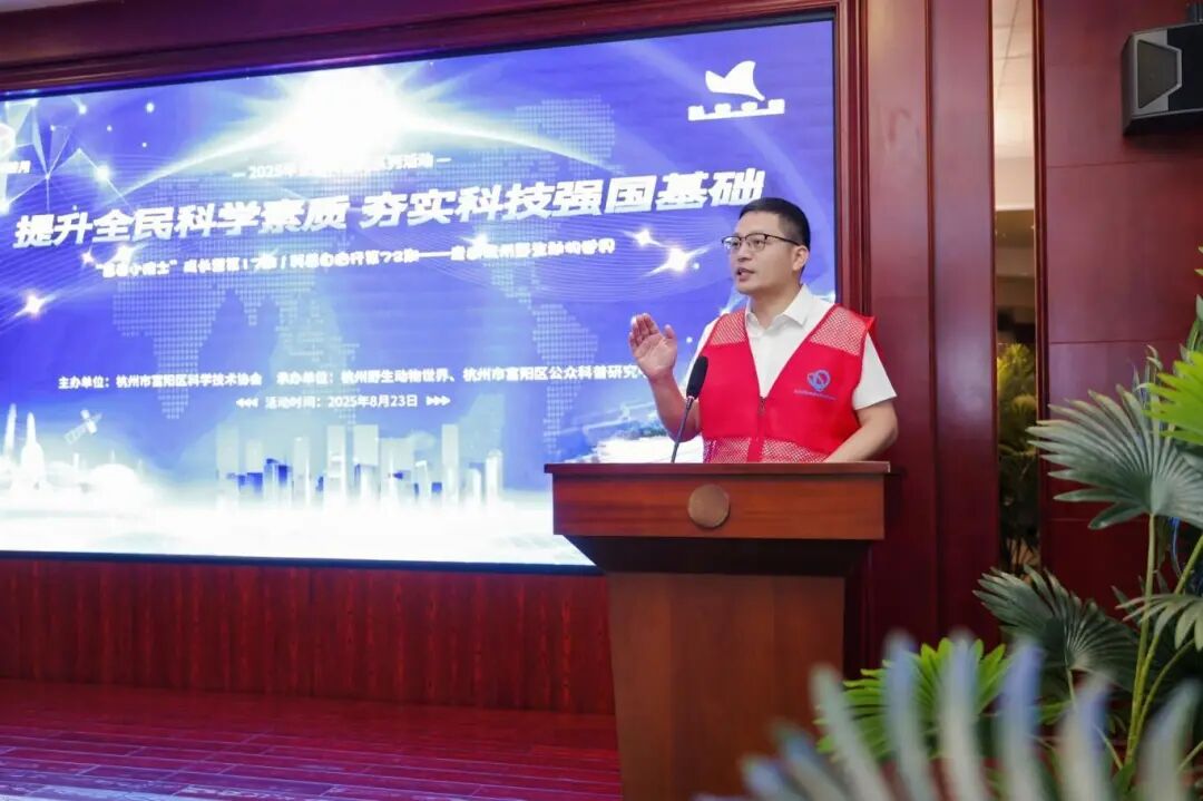 在迎接首个全国科普月的热烈氛围中,富阳区科学技术协会与杭州野生动物世界携手打造的“野性观察员:解码动物朋友圈”沉浸式生态科普研学活动,于8月23日圆满落幕。此次活动以“观察者与守护者”双角色模式为核心,由富阳区科普资源“助推双减”研究生讲师团孙刘伟、申红芳两位博士精心设计、跟团讲解,带领42名小学生深入探索野生动物保护的奥秘。线上图片直播吸引逾23万人次观看,成为全民科普教育的一次成功实践。
