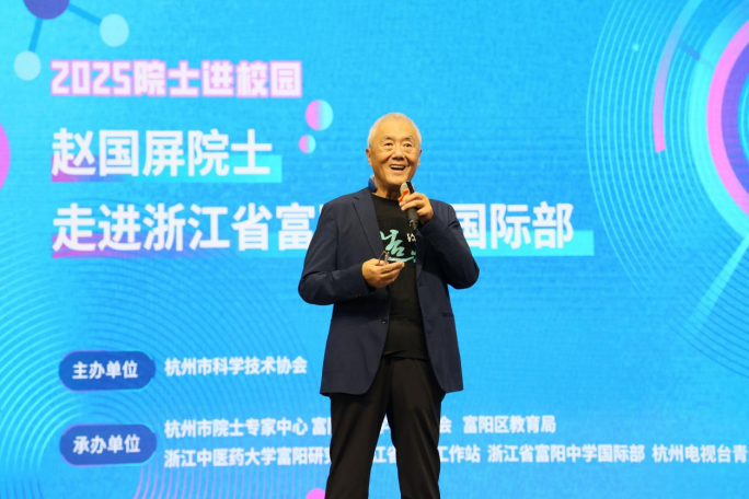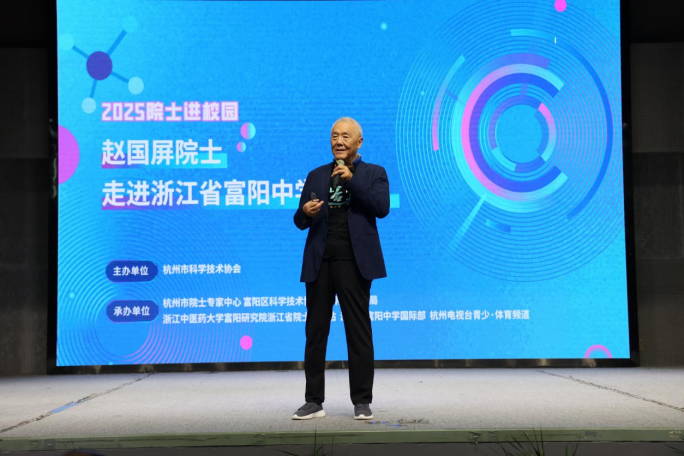 9月22日,富阳区“富春山居人才月”系列活动之一的院士进校园活动在富阳中学国际部圆满举行。此次活动由杭州市科学技术协会主办,杭州市院士专家中心、富阳区科学技术协会、富阳区教育局、浙江中医药大学富阳研究院浙江省院士工作站、浙江省富阳中学国际部、杭州电视台青少·体育频道联合承办。中国科学院院士赵国屏走进校园,与师生们进行了一场面对面的交流,分享了他的求学经历与前沿观点,传递科学家精神。
